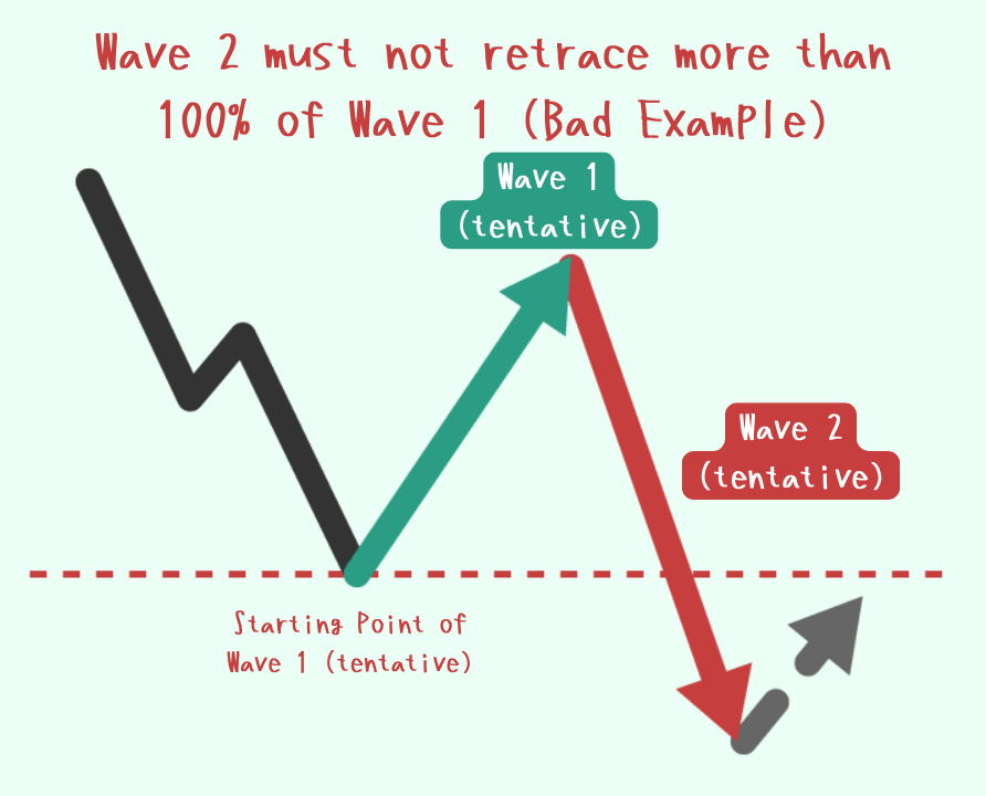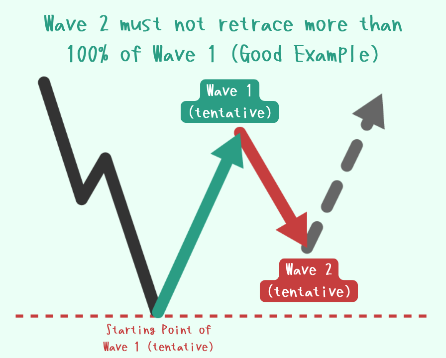 - Wave 2 must not retrace more than 100% of Wave 1.