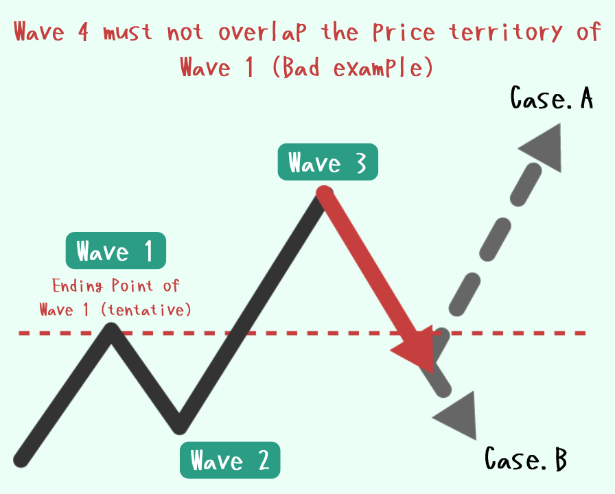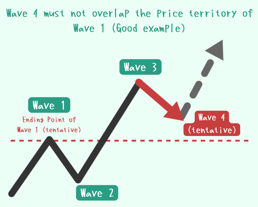 However, if Wave 4 drops below the end of Wave 1, the impulse scenario is invalidated, and the structure should be reconsidered.