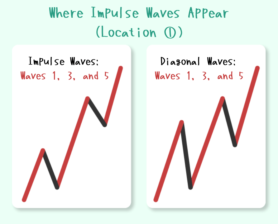 What sets the impulse apart from a diagonal is its clear, strong price movement and larger price range.