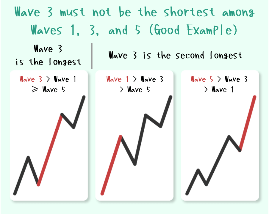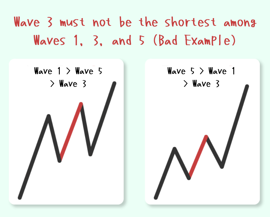 - Wave 3 must not be the shortest among Waves 1, 3, and 5.