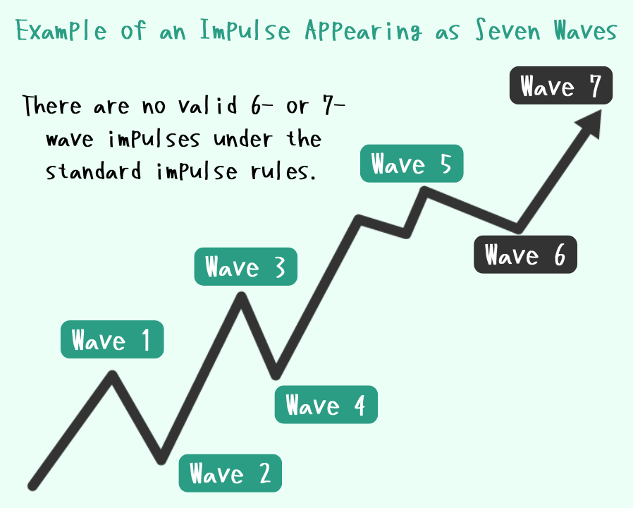 Sometimes, one of the sub-waves within Waves 1, 3, or 5 becomes extended, making the overall movement appear as if it has 7 waves—this is known as a 7-wave count.