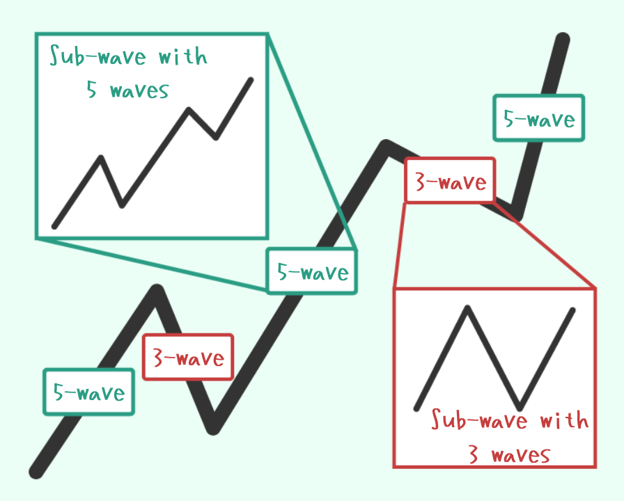 This structure generally holds true. However, on shorter timeframes or during choppy market conditions, the sub-wave patterns may become unclear or difficult to distinguish.
