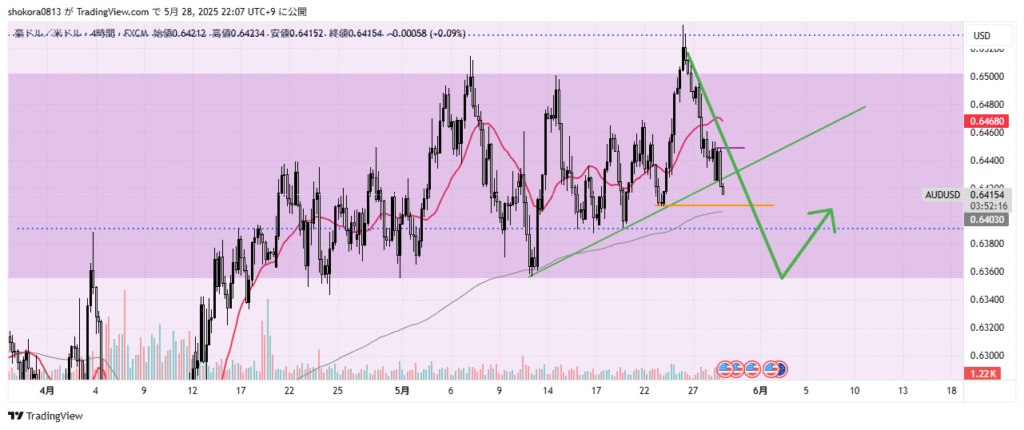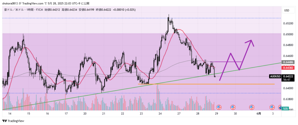 Since the price is near the 4-hour trendline and 1-hour higher low, wait for a trend reversal on the lower timeframe and consider entering a long position.