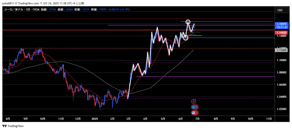 On the daily chart, the price pulled back once near the previous high, then resumed its upward move aiming for a new high.