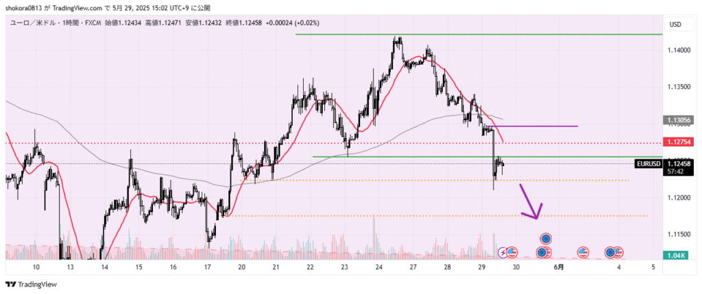 If the horizontal line currently acting as support is clearly broken downward, consider a short entry on lower timeframes targeting the next key support level.