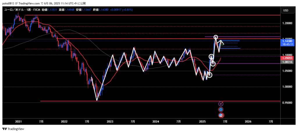There is a possibility of a double top forming at the monthly resistance line, leading to a reversal.