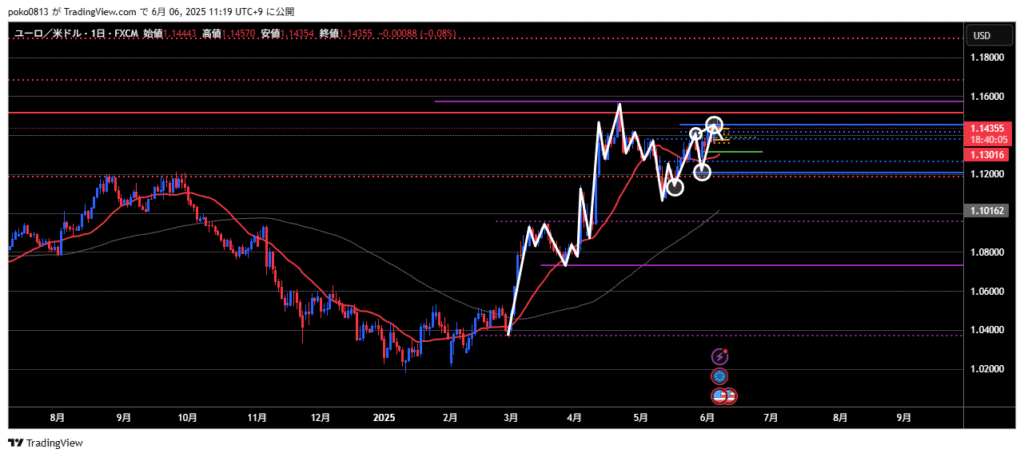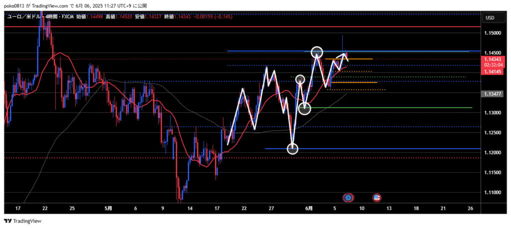 The price slightly broke above the daily resistance line with a wick, but was pushed back strongly, indicating resistance.