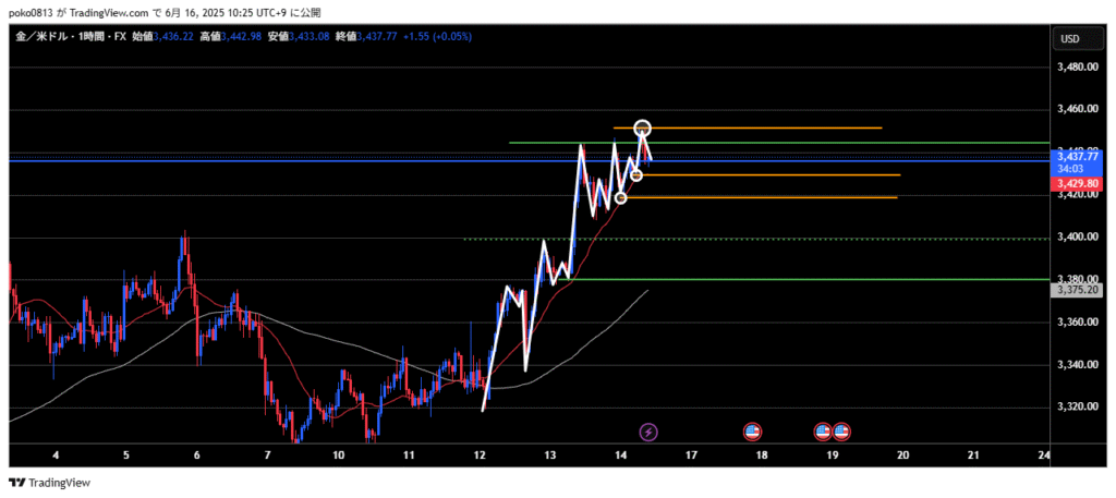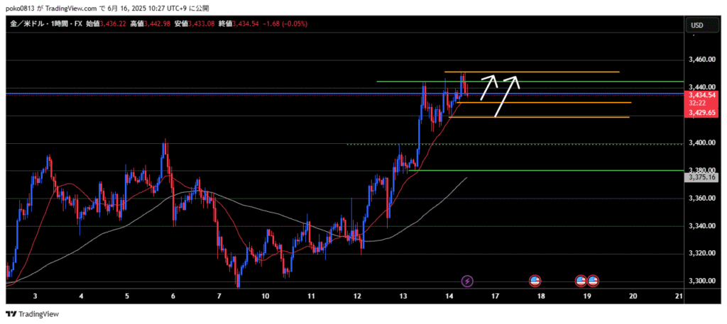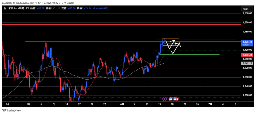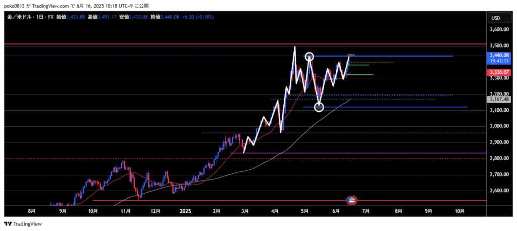 If the daily closes above around 3435, there is a high chance it will rise toward the previous high.