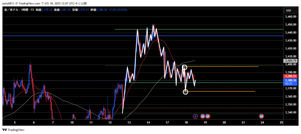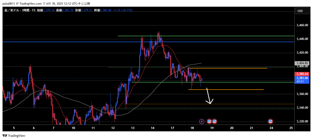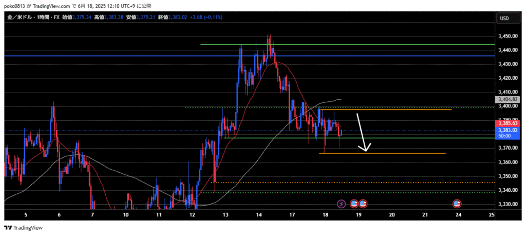 Short-term selling pressure appears strong, so wait for price to rise to the upper limit of the 1-hour range and consider shorting.
