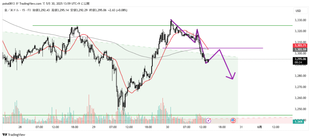 Since the 15-minute chart has shifted from uptrend to downtrend, wait for a pullback and enter a short.