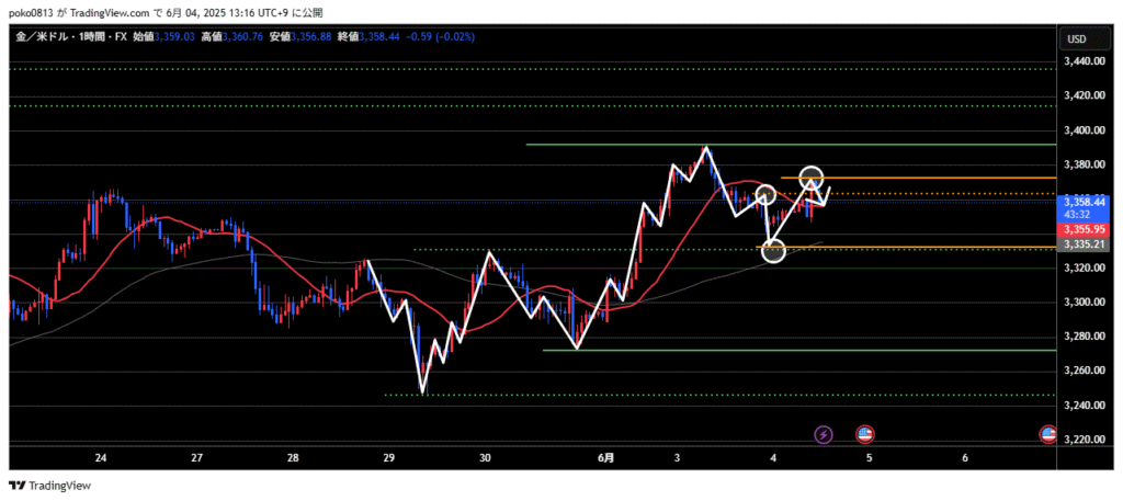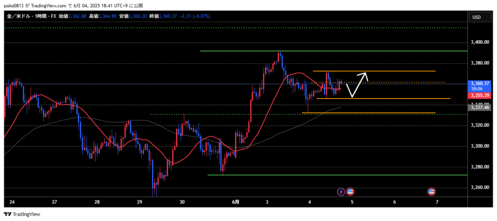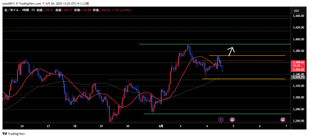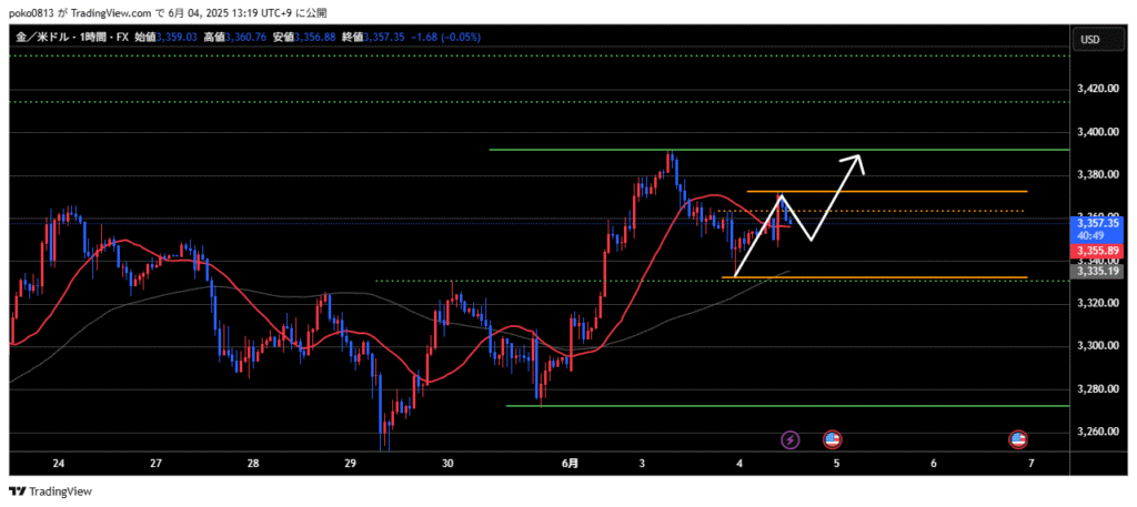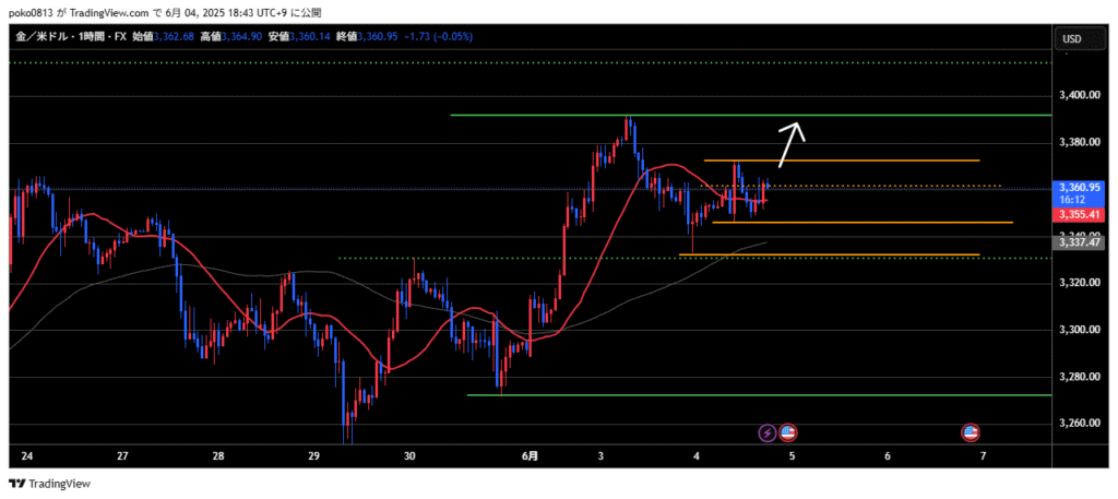 Once the 1-hour chart confirms higher highs and higher lows, consider entering a breakout long.