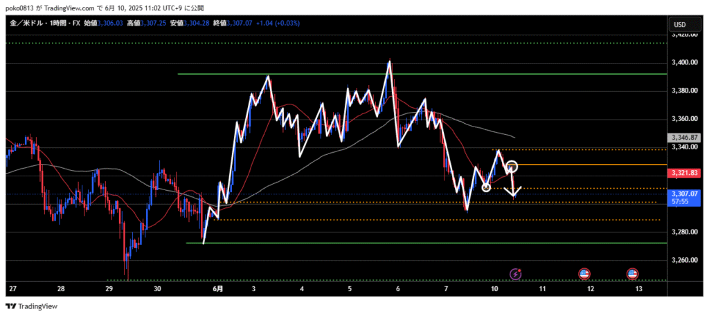 Since a downtrend is forming on the 1-hour chart near the 4-hour swing low area, consider waiting for a better entry.