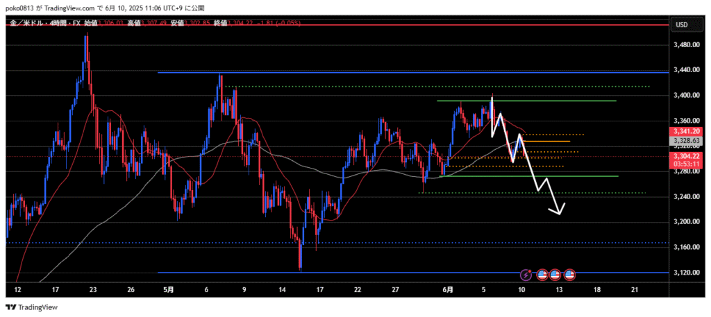 If the downward momentum is strong and the 4-hour swing low is broken downward, wait for a pullback and consider a short entry.
