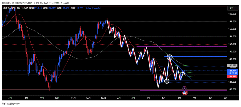 Currently in the 5th wave of the Elliott Wave count, but it’s uncertain whether the price will drop further to the end of wave 3 or start transitioning into an uptrend soon.