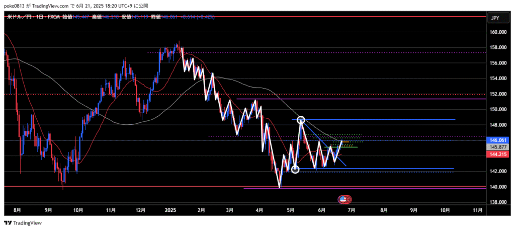 It is currently hovering around the midpoint of the price range between 142.3 yen and 148.5 yen.