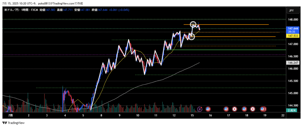At the recent high, upward momentum has slightly weakened, forming a small double top.