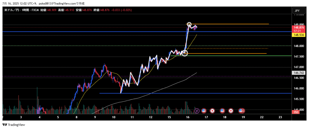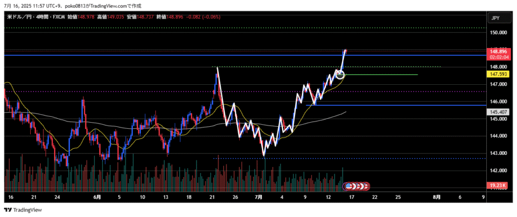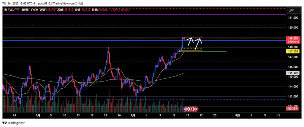 The price had been ranging between 142.3 yen and 148.5 yen, but that range has now been broken to the upside.