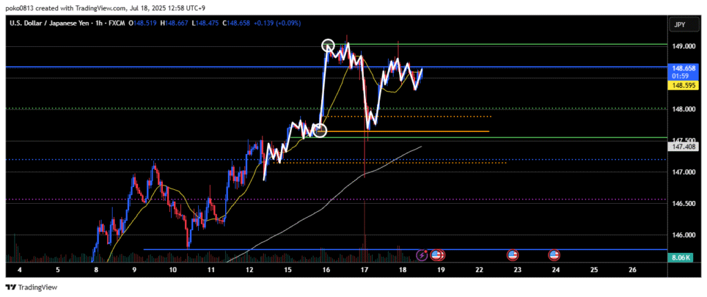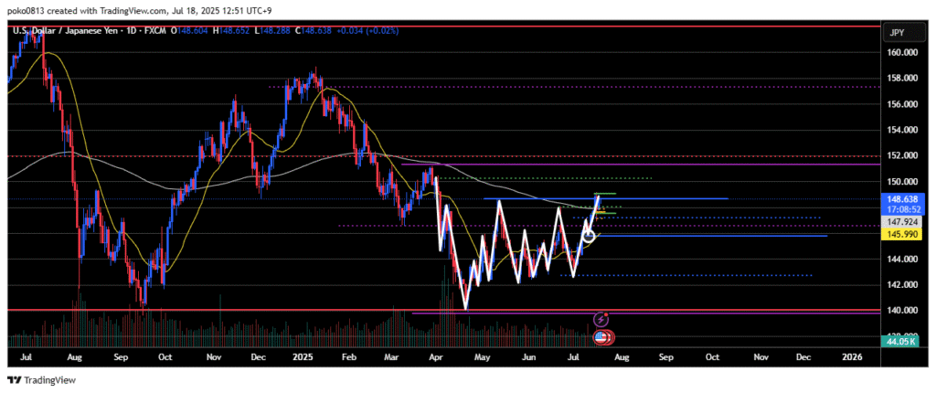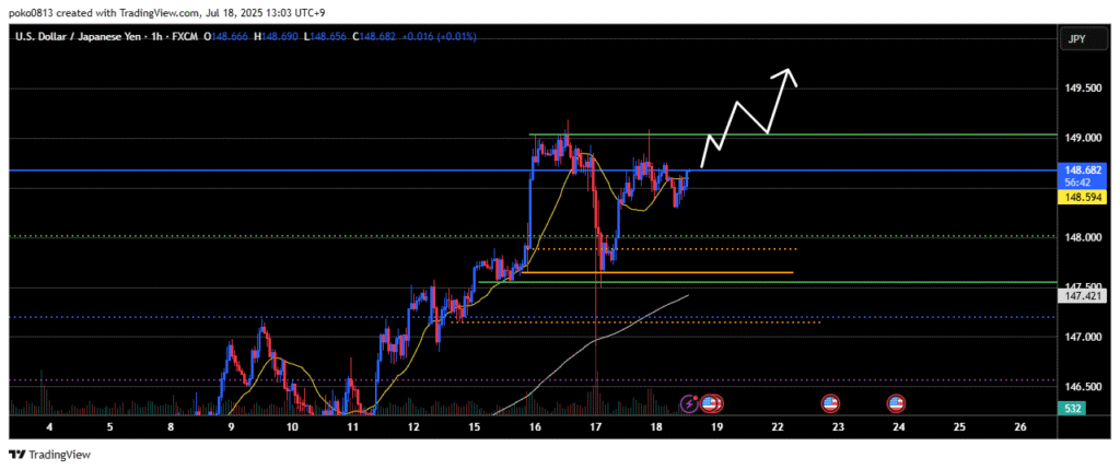 The price had been ranging between 142.3 yen and 148.5 yen, but that range has now been broken to the upside.