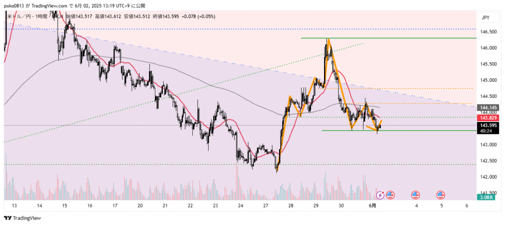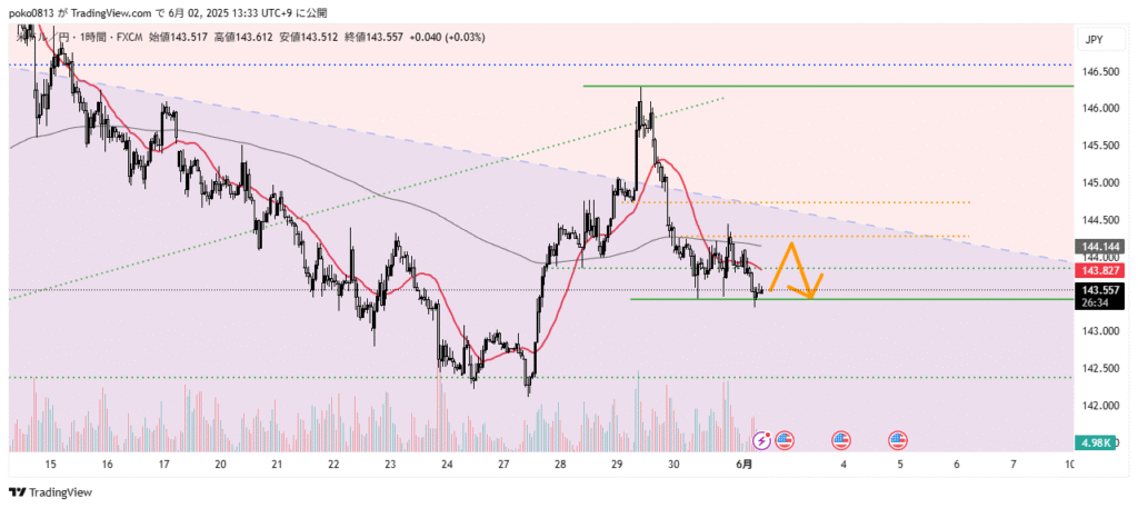 We are not sure how far it will adjust, but we will consider going short by pulling back to the upper limit of the 1-hour range.