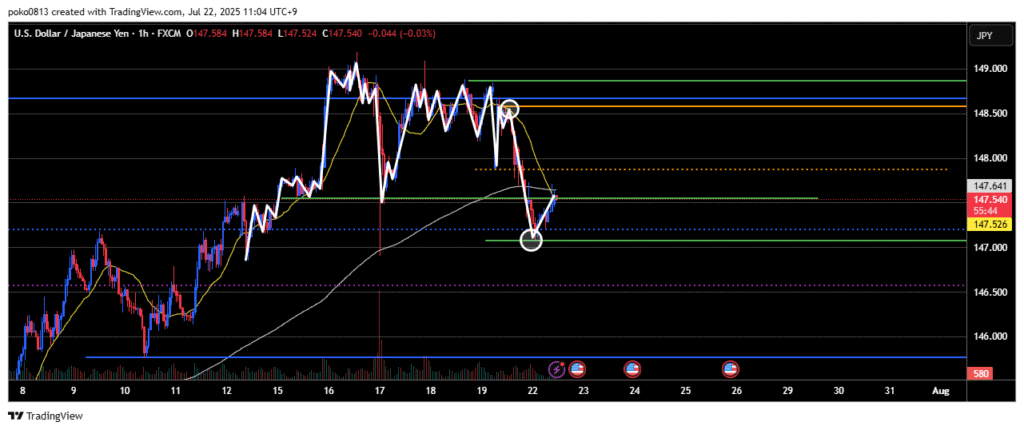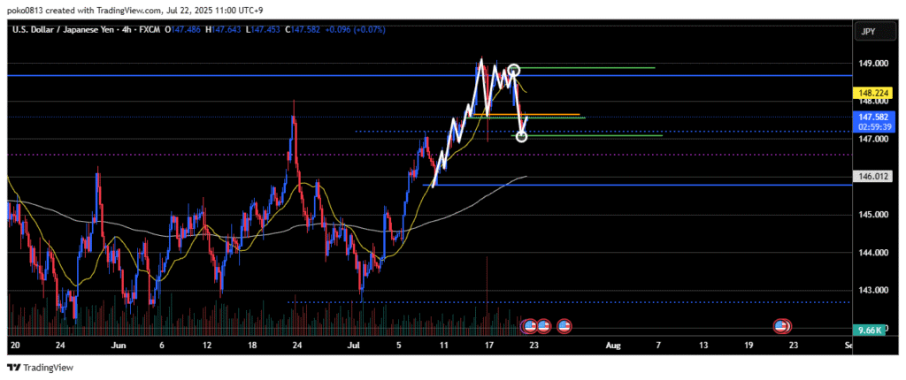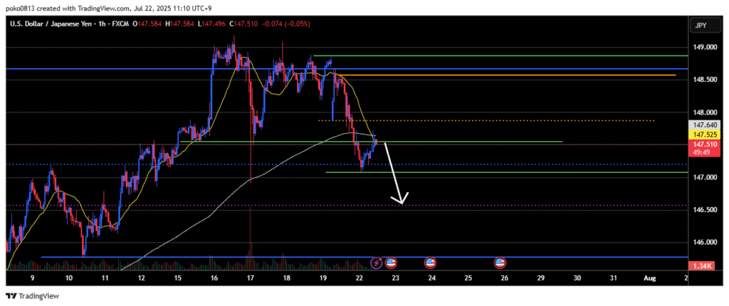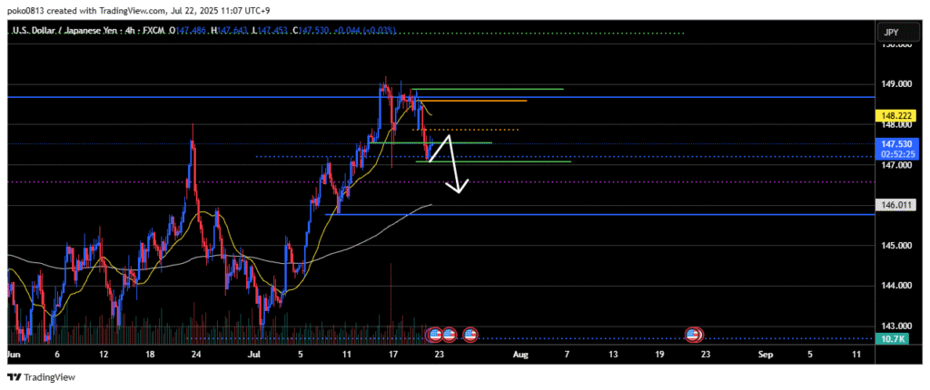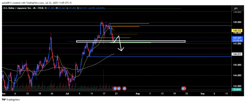Currently, signs of a pullback sell are appearing around the 1-hour 21-period moving average and the resistance-turned-support level on the 4-hour chart.
