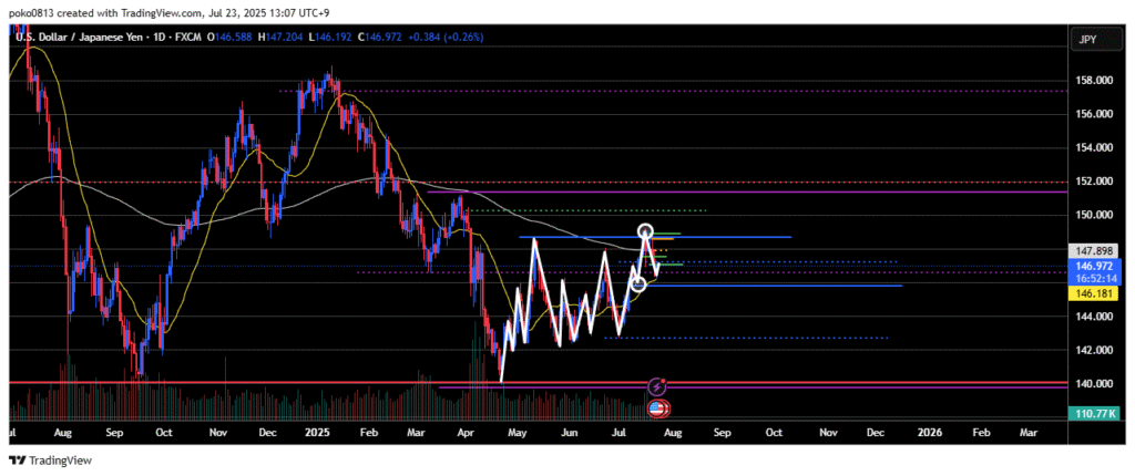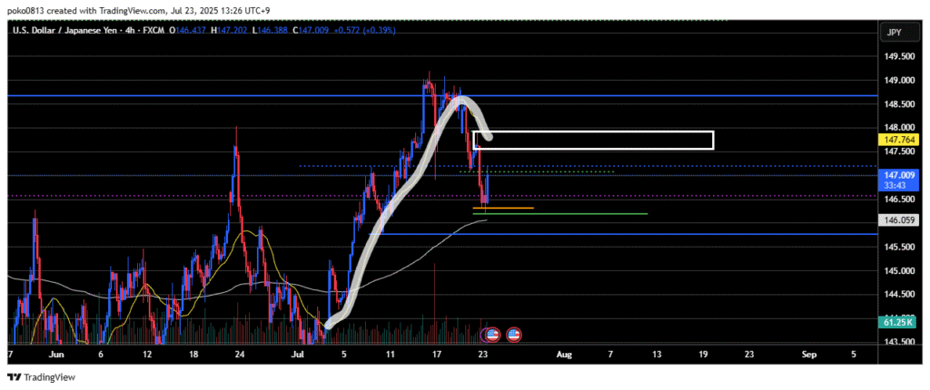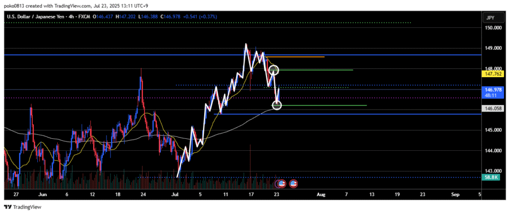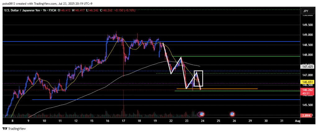 Currently, the last confirmed swing low is considered to be at 145.75 yen.