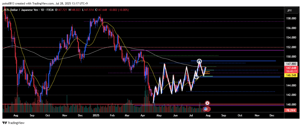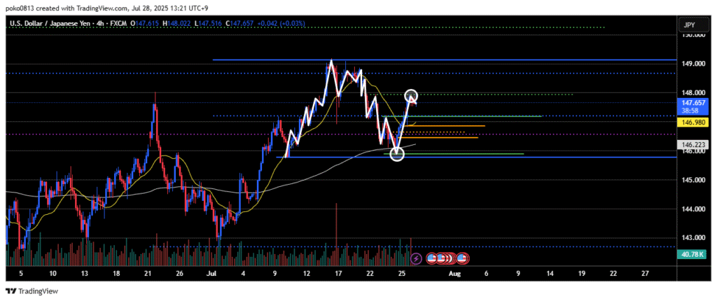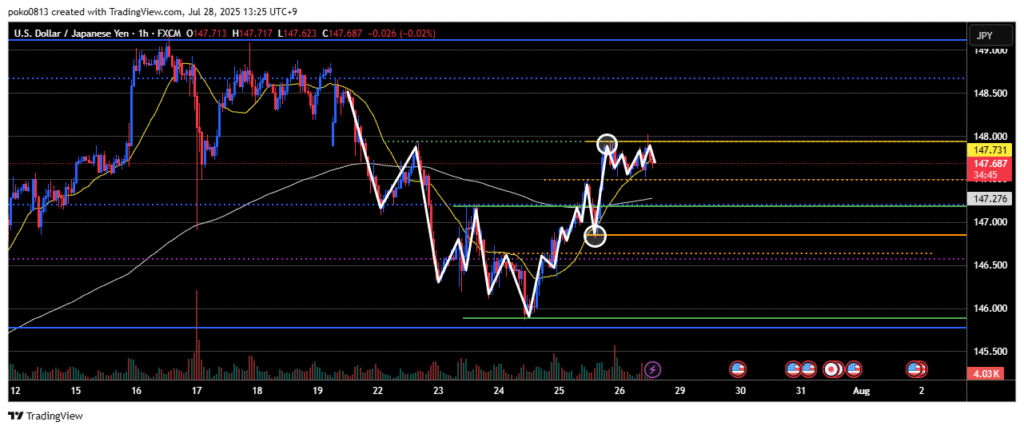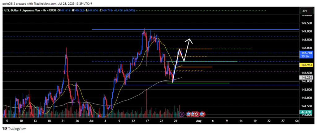 Currently, the price is facing resistance around the 148 yen level, but there’s still a possibility that the 1st wave of the uptrend hasn’t finished yet.