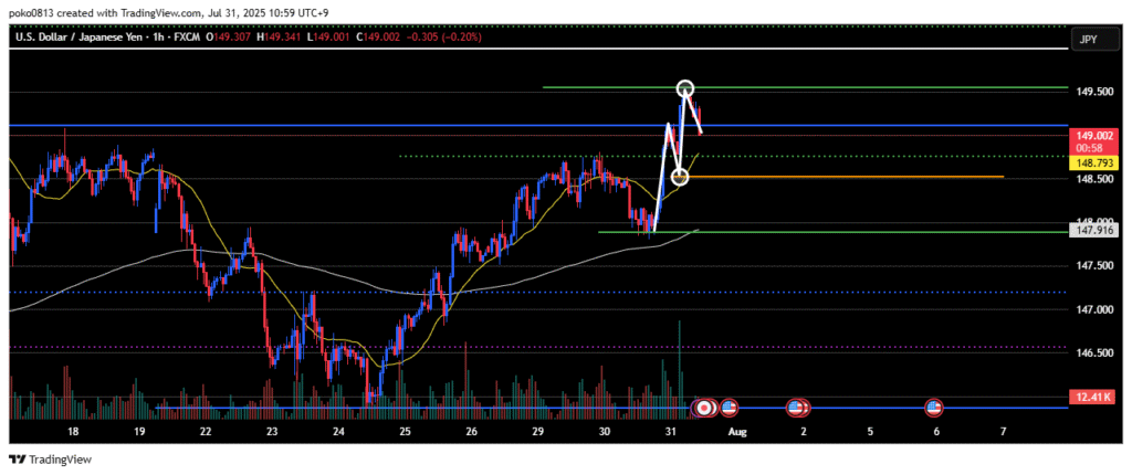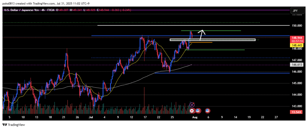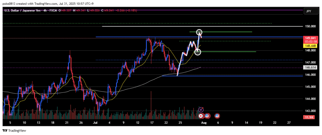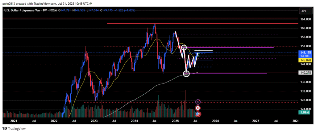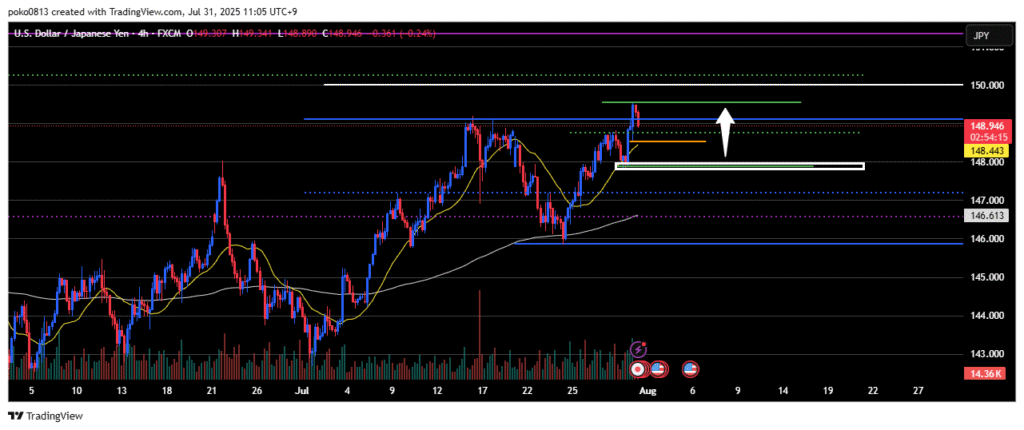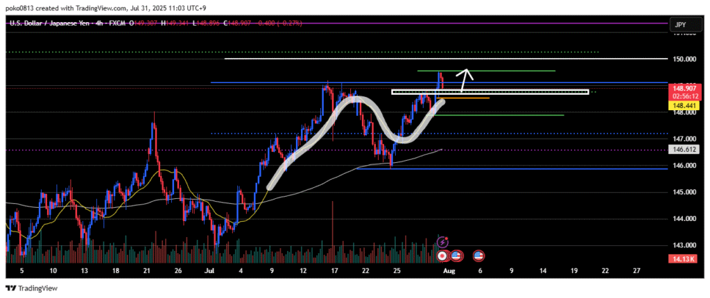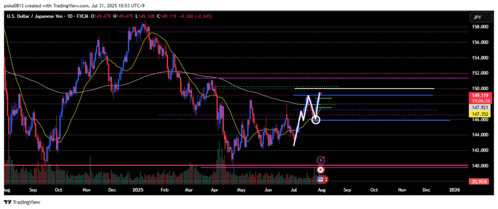 Watching to see if the price can reach the 150 yen level (white line).