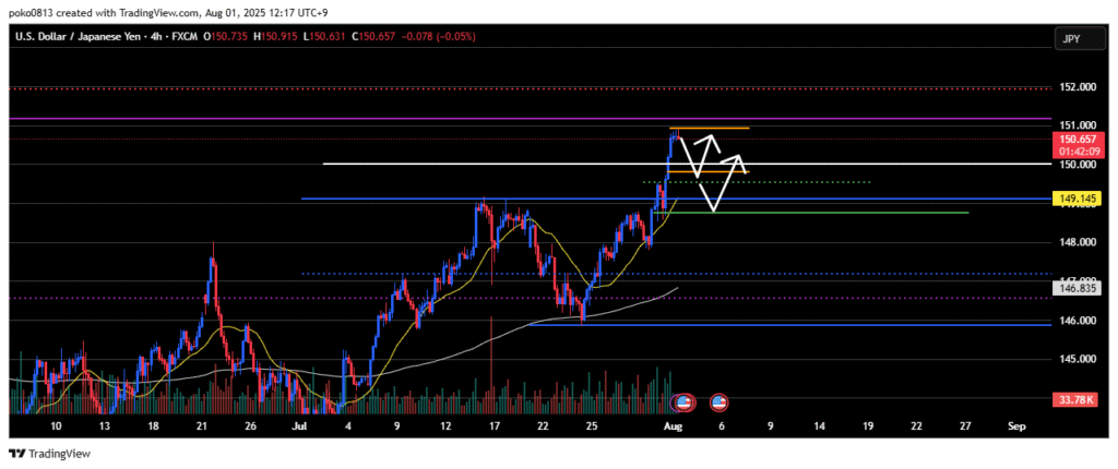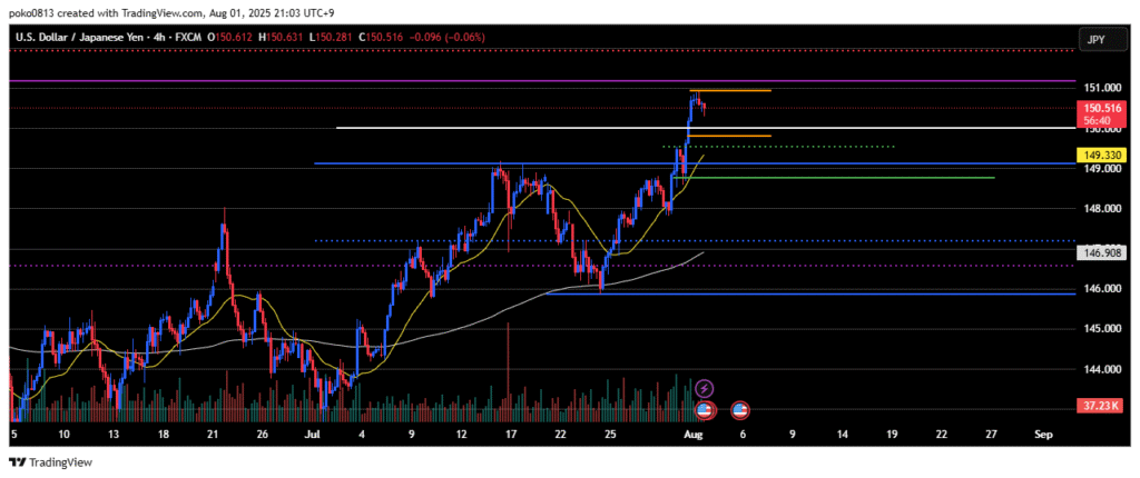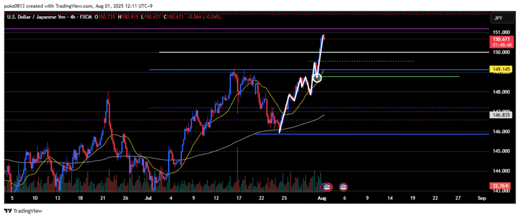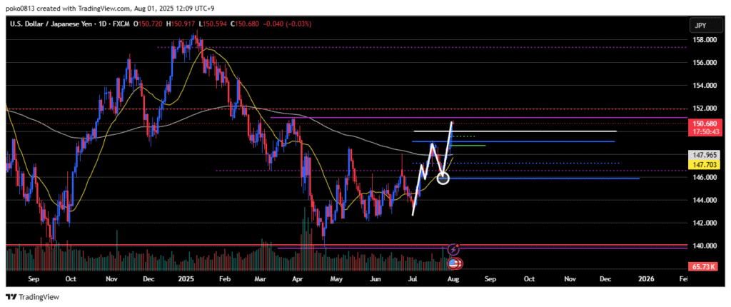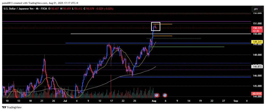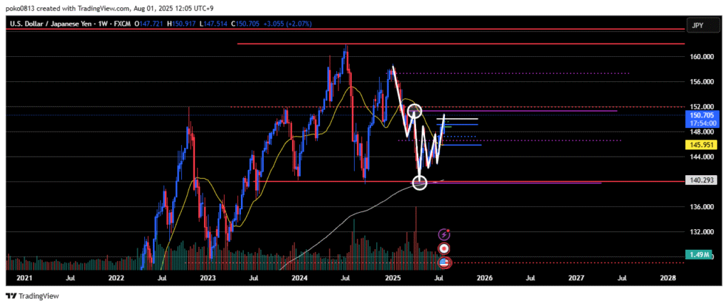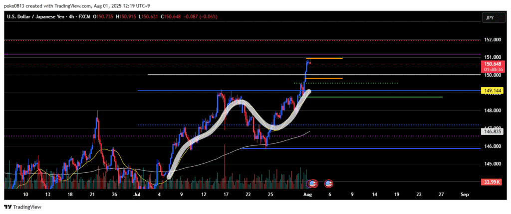 The price has broken above the 150 yen level and is now approaching the swing high area on the weekly chart.