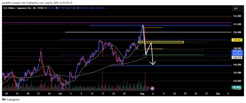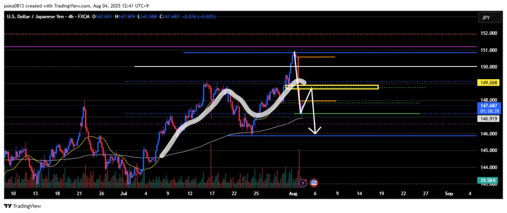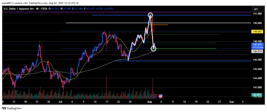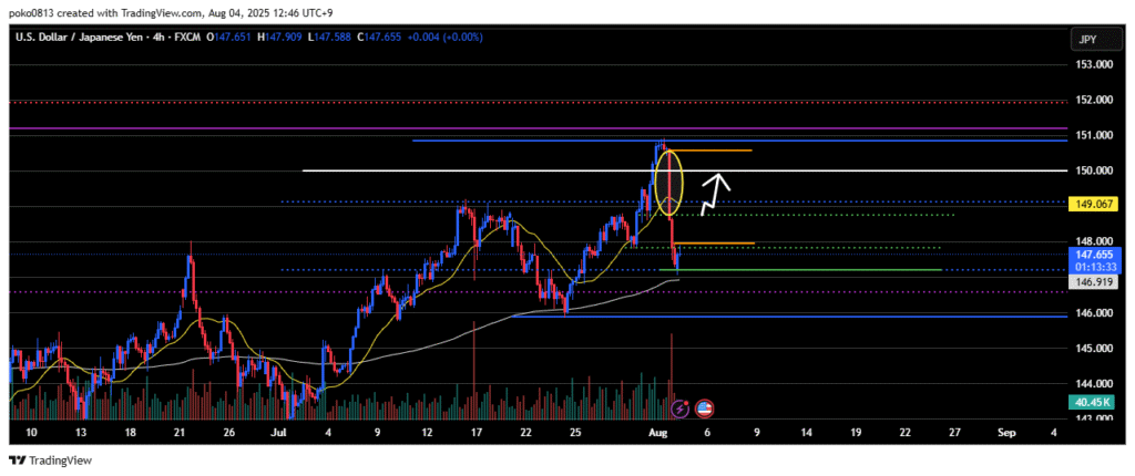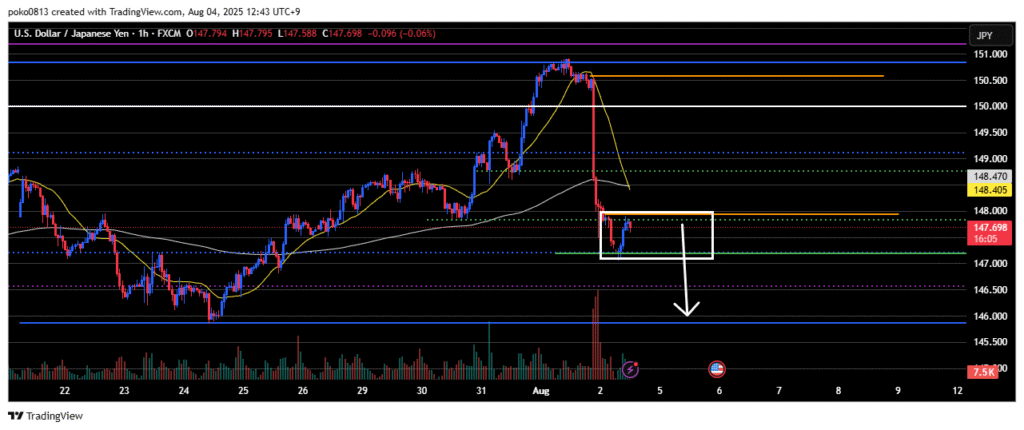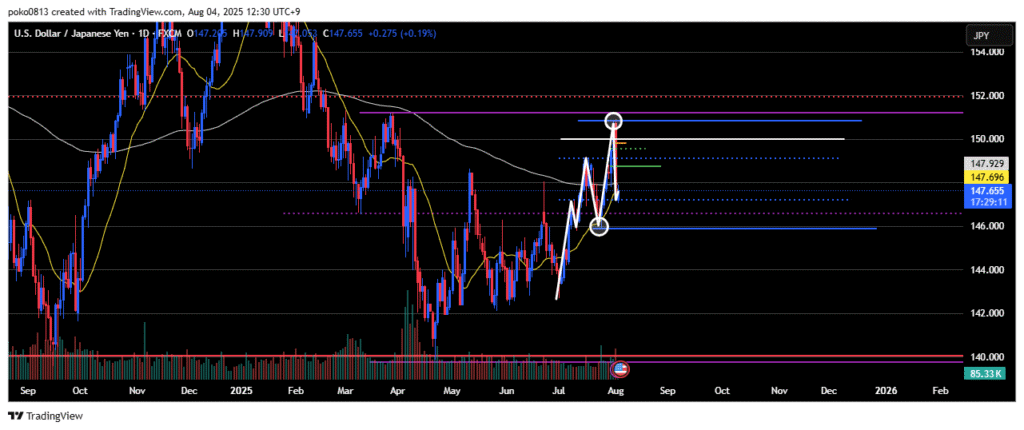 Since the swing high is somewhat unclear, I’ll keep an eye on the 147.9 yen area as a potential key level.