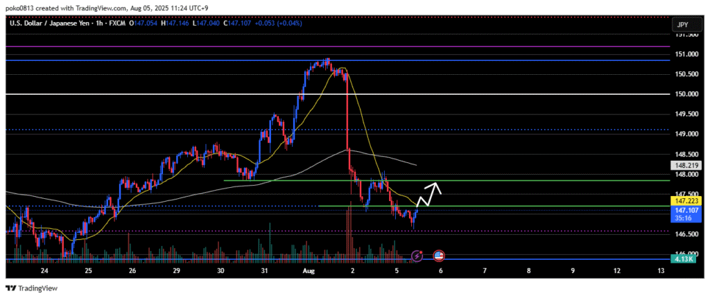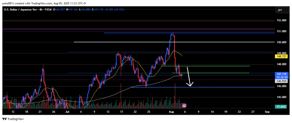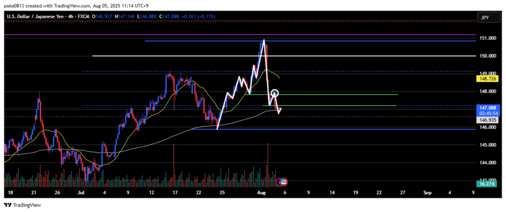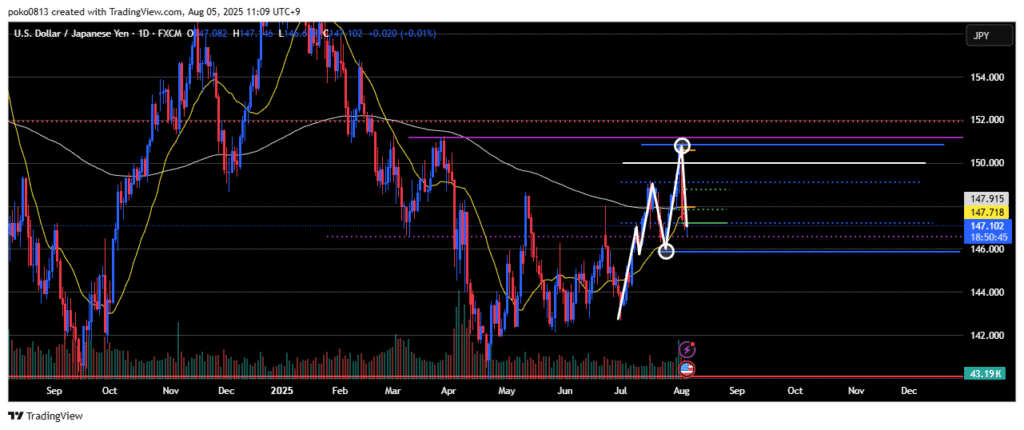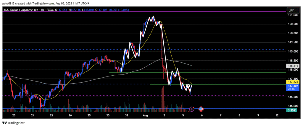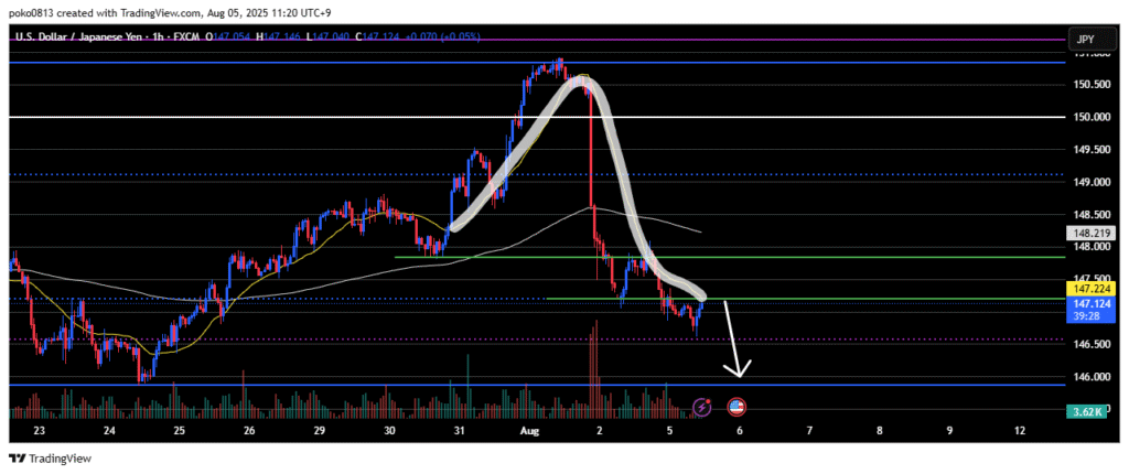 Last week, the price climbed up to the area around the final swing high of the previous downtrend, but was strongly pushed back down—partly due to the impact of the U.S. Non-Farm Payrolls release.