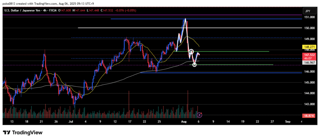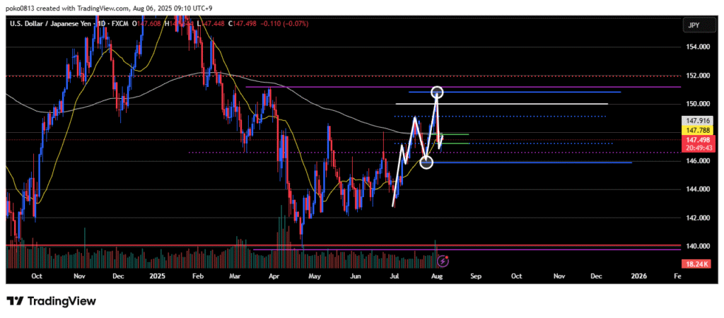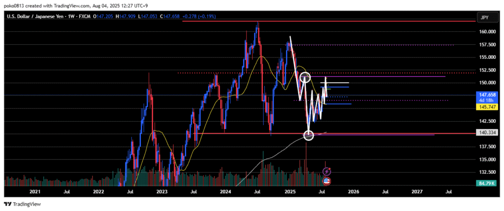 Last week, the price climbed up to the area around the final swing high of the previous downtrend, but was strongly pushed back down—partly due to the impact of the U.S. Non-Farm Payrolls release.