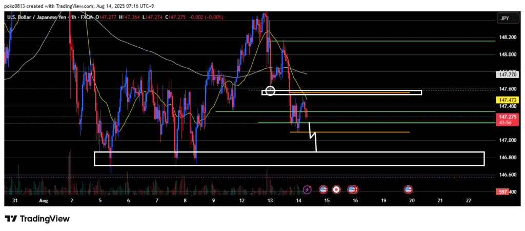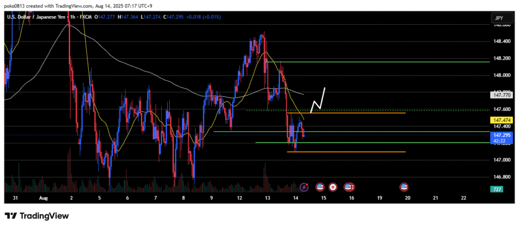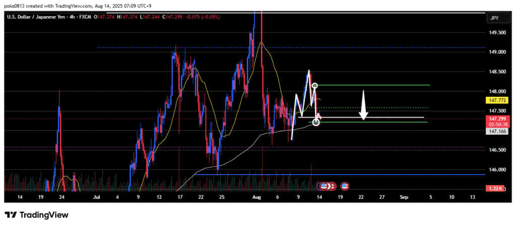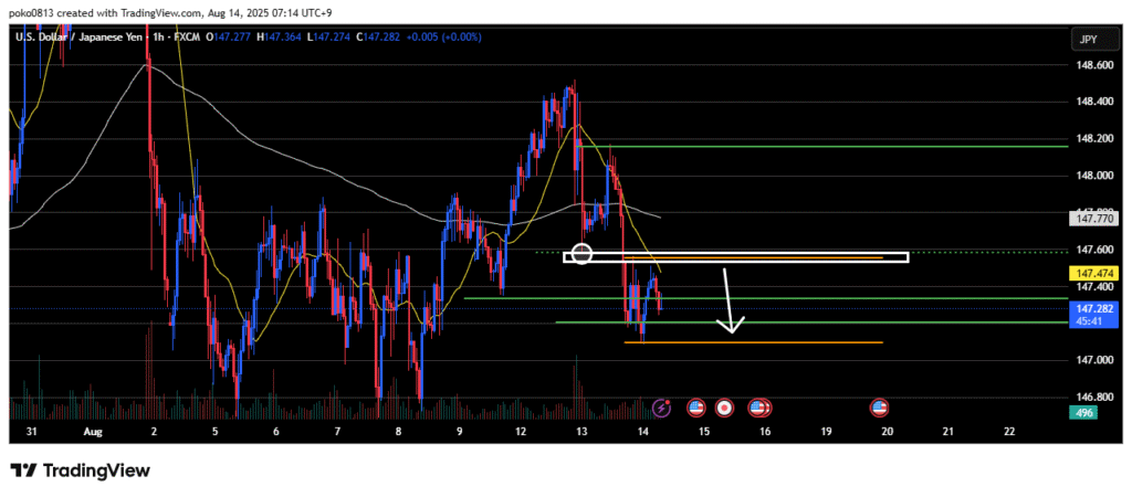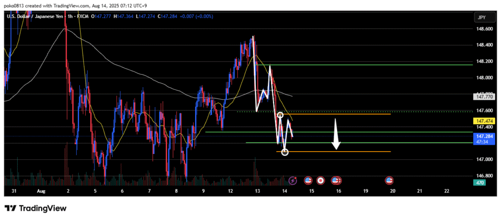 Consider a short entry if the price returns to around the previous low on the 4-hour chart and near the range high on the 1-hour chart.