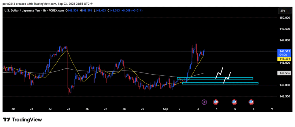 Since an uptrend is forming on the short-term chart, I will wait for a pullback and then look for a long entry toward the recent high on the 4-hour chart.