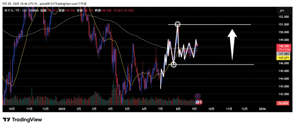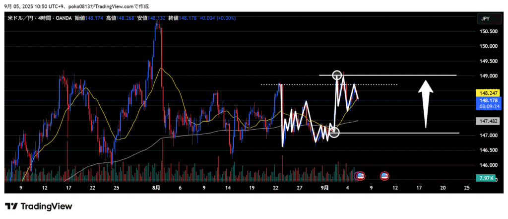 If the price breaks below the middle line in the image above, I will look for a short entry in the short term.
