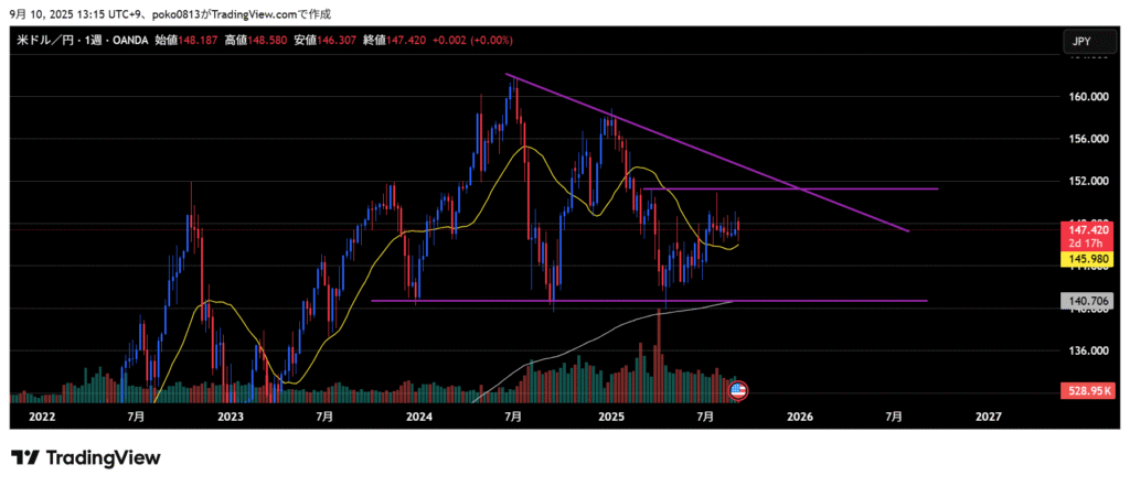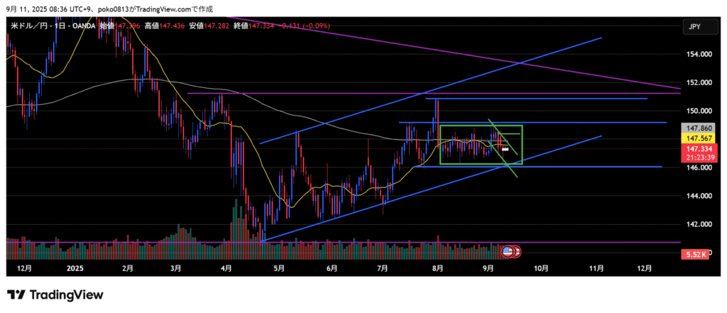 If the support line is broken to the downside, I expect a decline toward around the halfway point of the first upward wave.