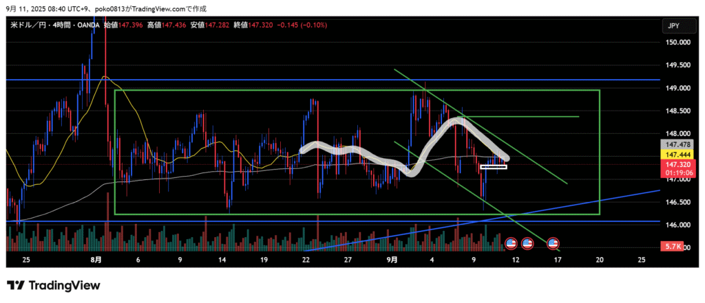 If the support line is broken to the downside, I will look for a short entry toward around the halfway point of the first wave.