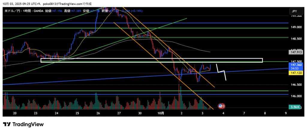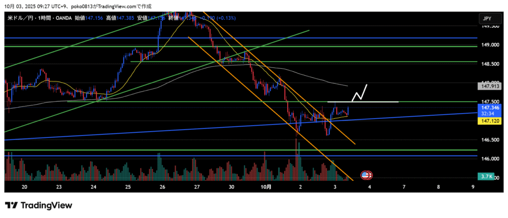 If higher highs and higher lows form on the 1-hour chart, I will look for dip-buying opportunities.