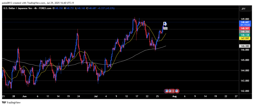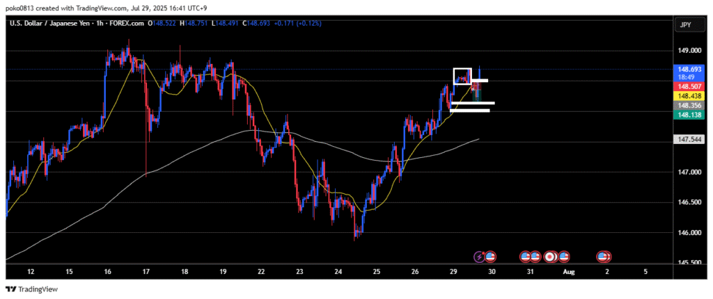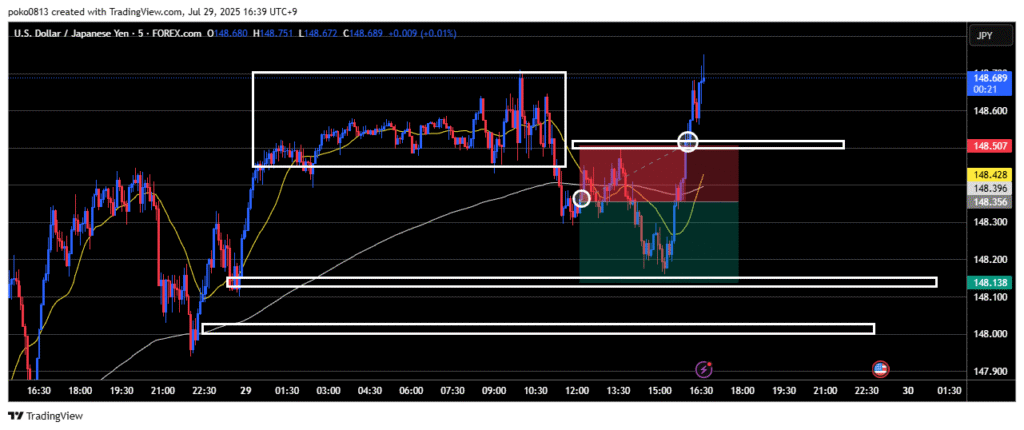 The planned take-profit zone was around 148.135 yen, a level likely to be respected on the 5-minute chart, but I expected a deeper drop and aimed for around 148.000 yen.