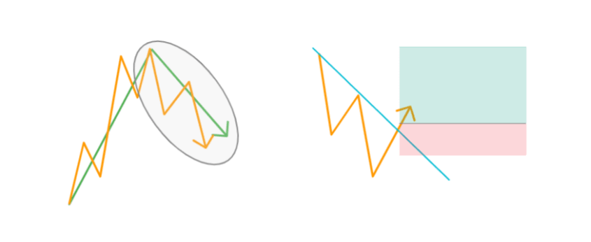 ②When the price moves back within the trend line